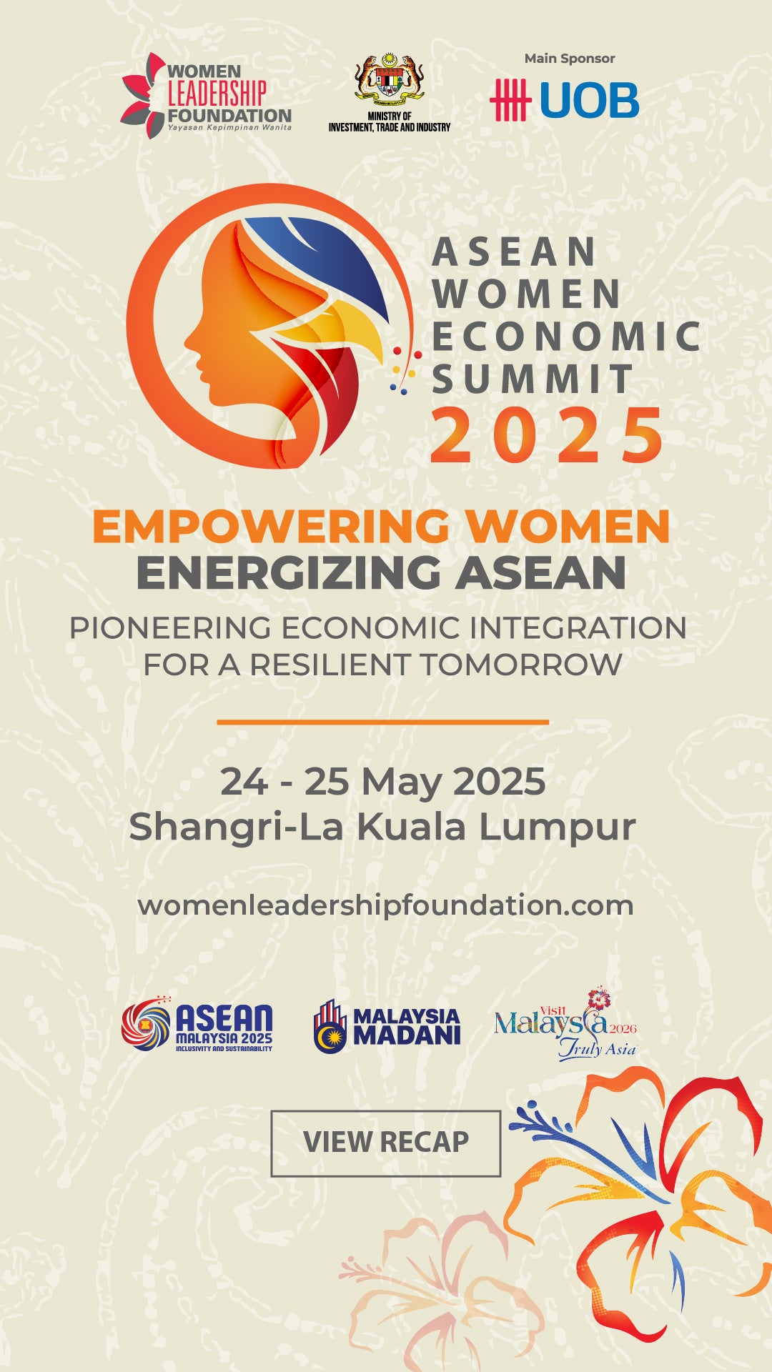 On 24–25 May 2025, at the heart of Kuala Lumpur, the Women Leadership Foundation, together with Malaysia’s Ministry of Investment, Trade, and Industry (MITI), will host the ASEAN Women Economic Summit 2025 — a catalytic space for meaningful conversations, powerful collaborations, and bold economic transformation.